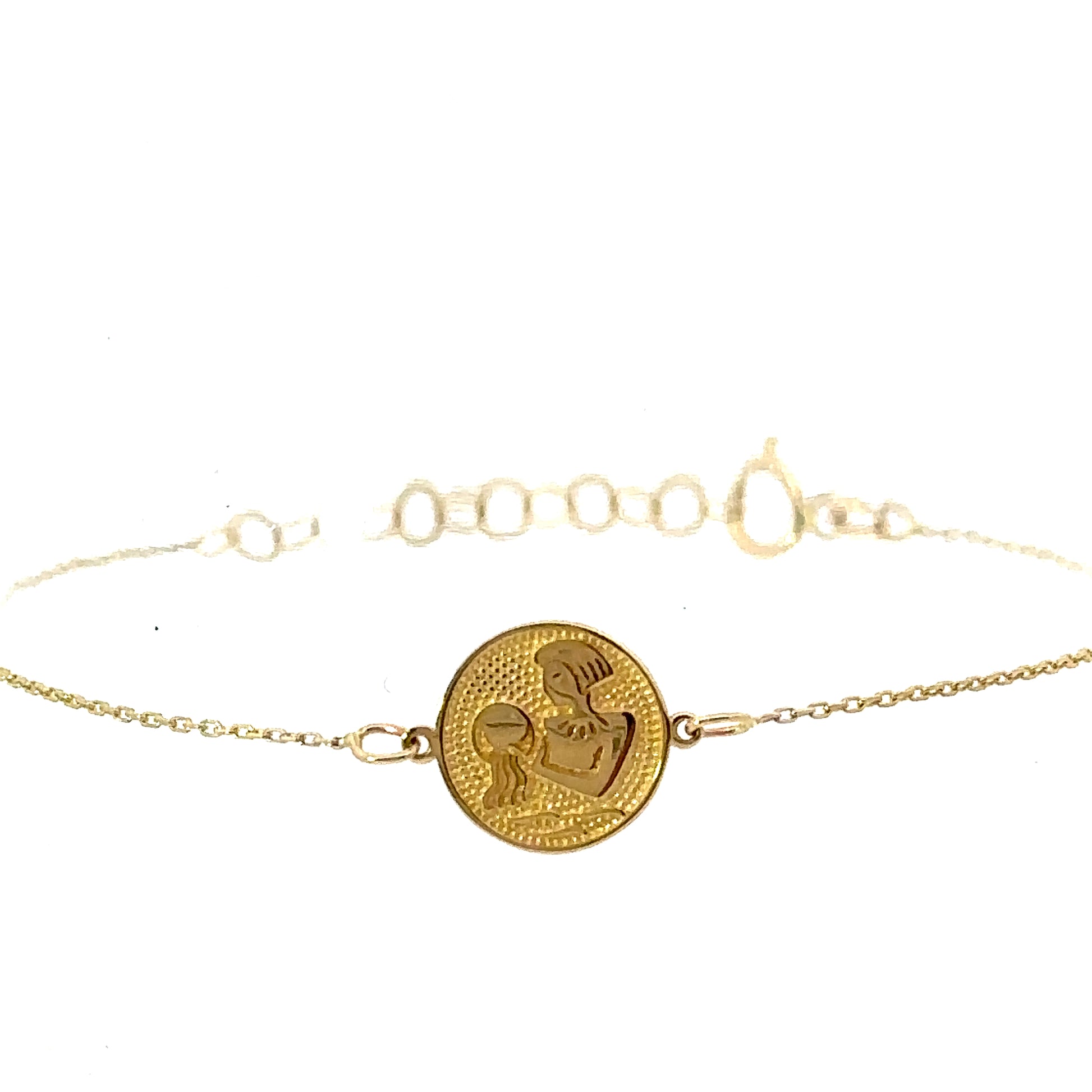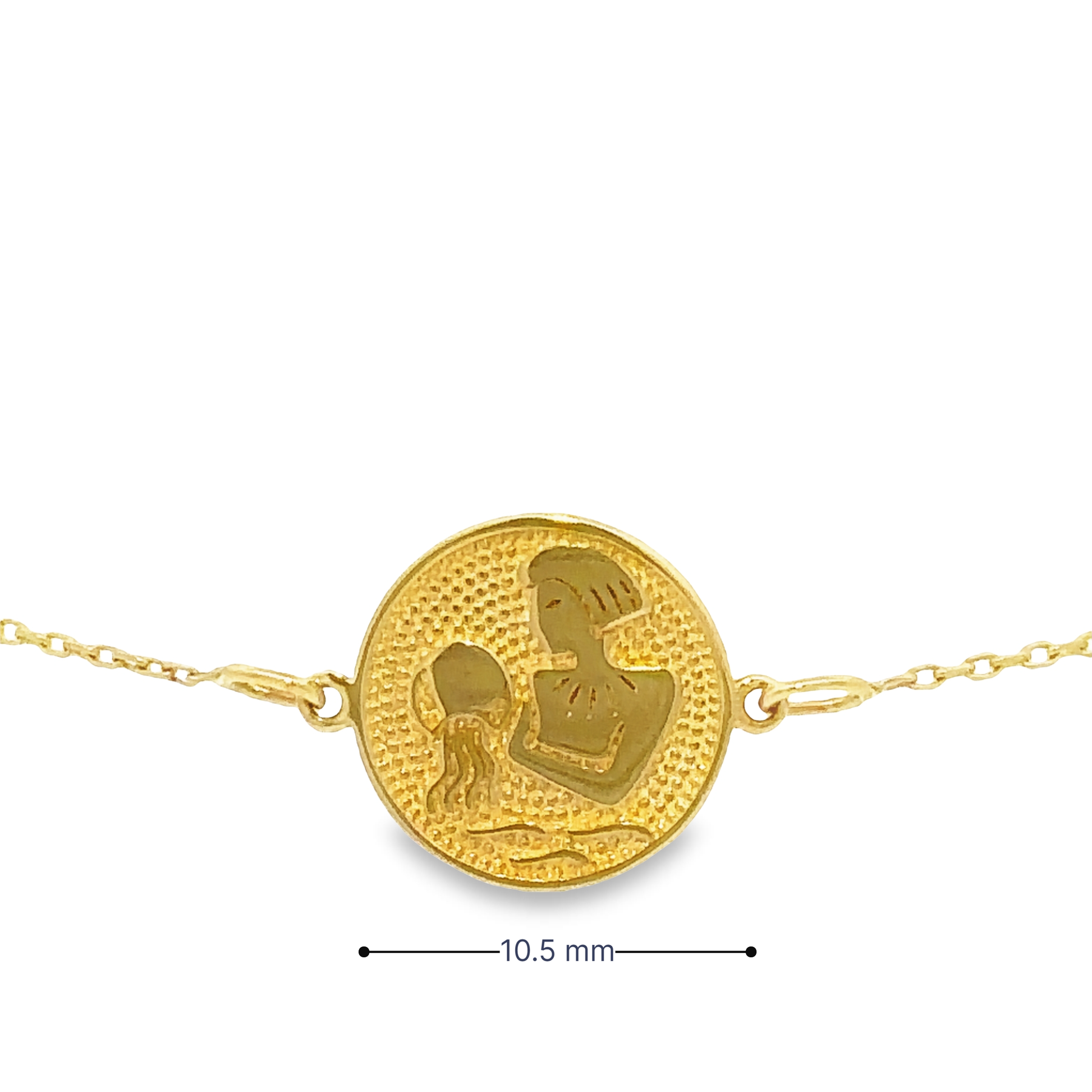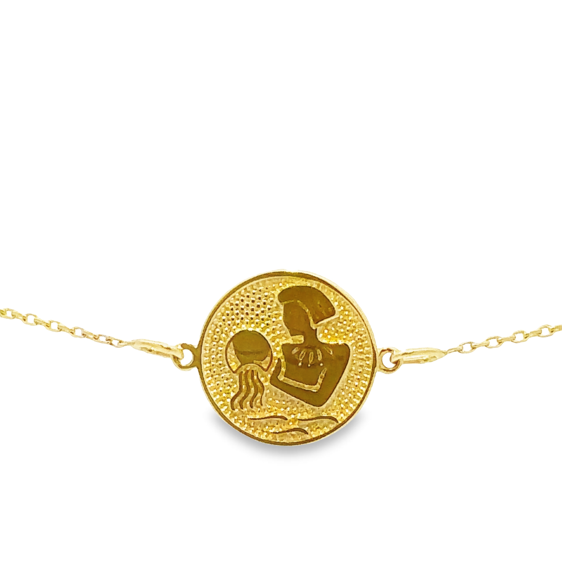 14 Karat Gold Aquarius Zodiac Disc Bracelet