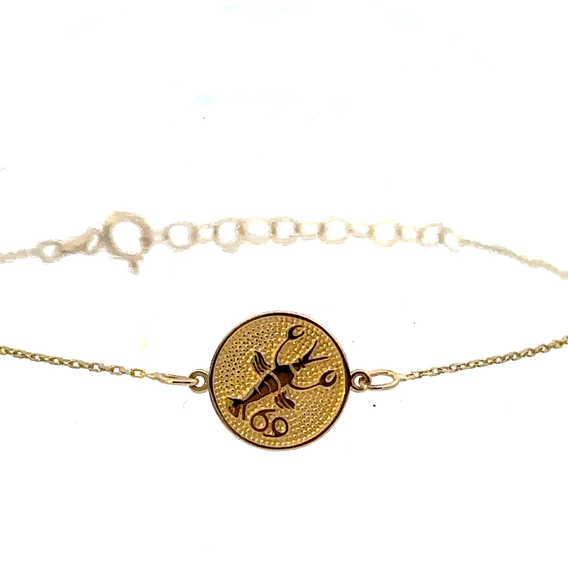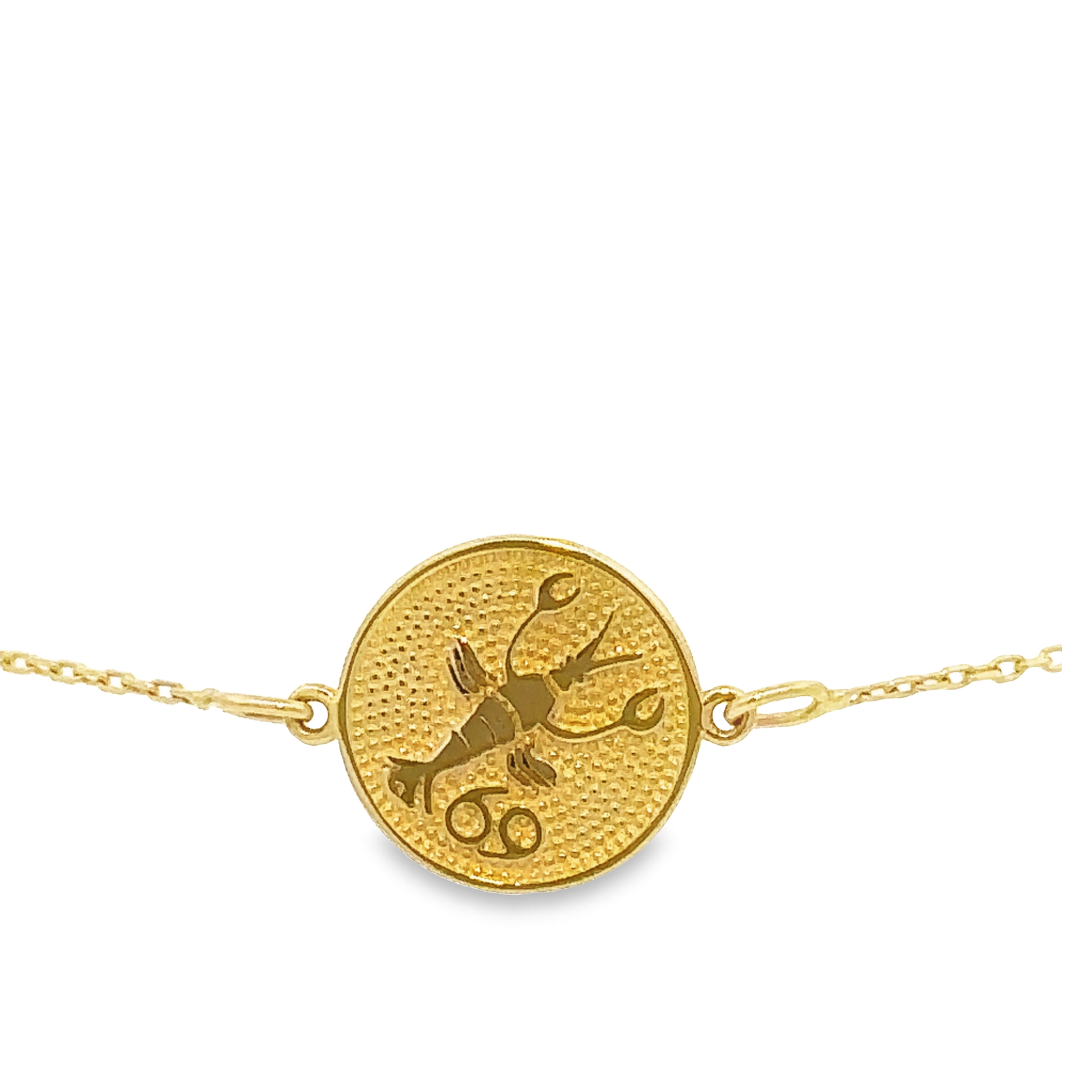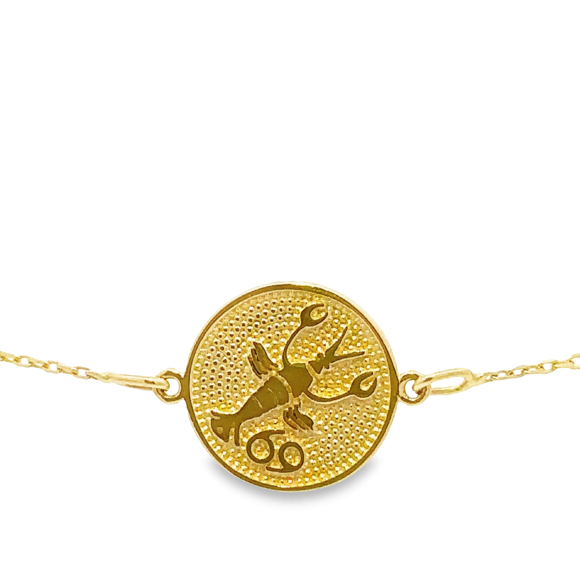 14 Karat Gold Cancer Zodiac Disc Bracelet