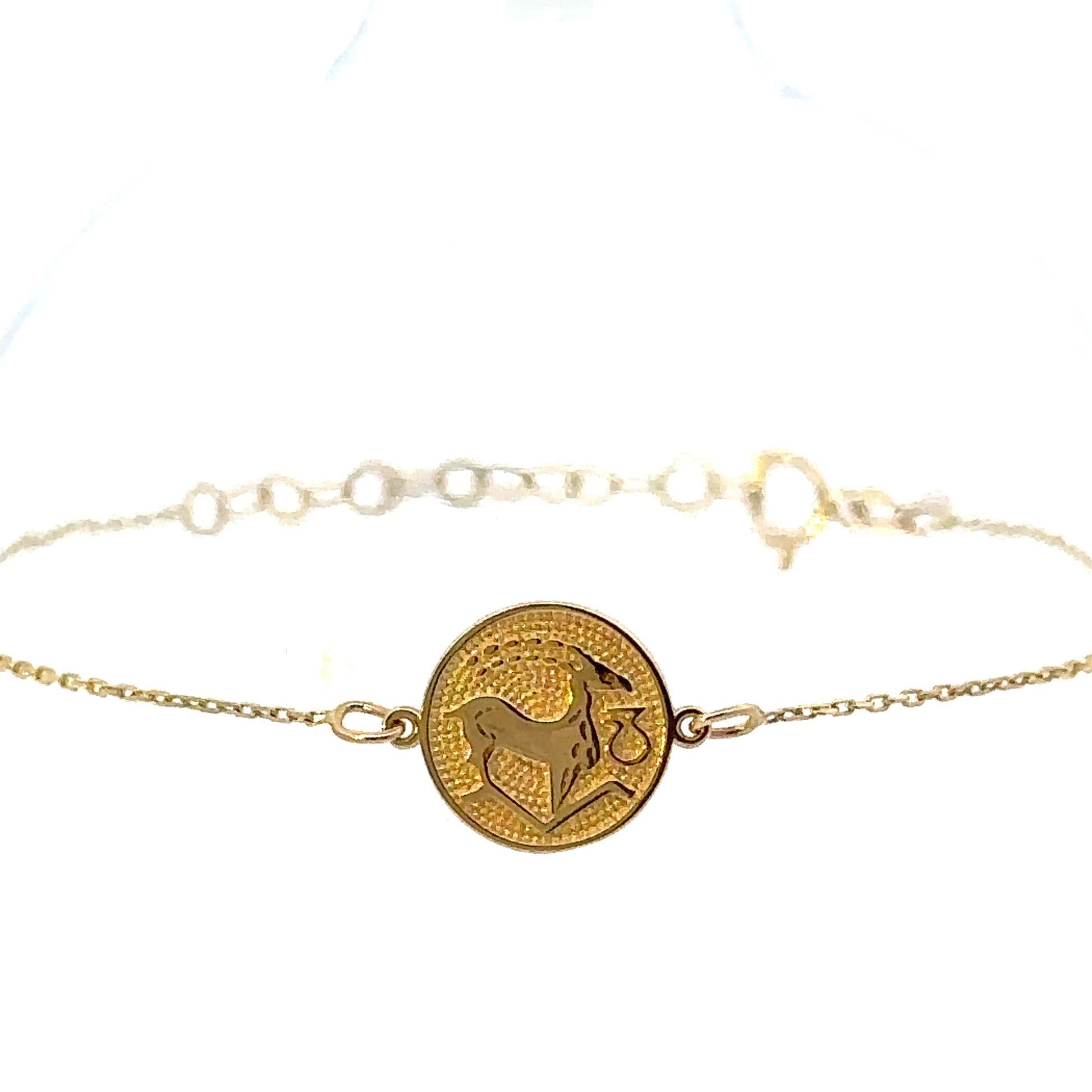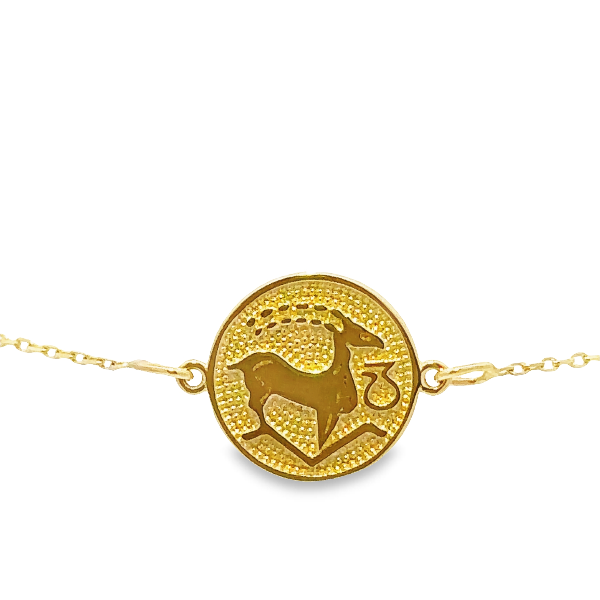 14 Karat Gold Capricorn Zodiac Disc Bracelet