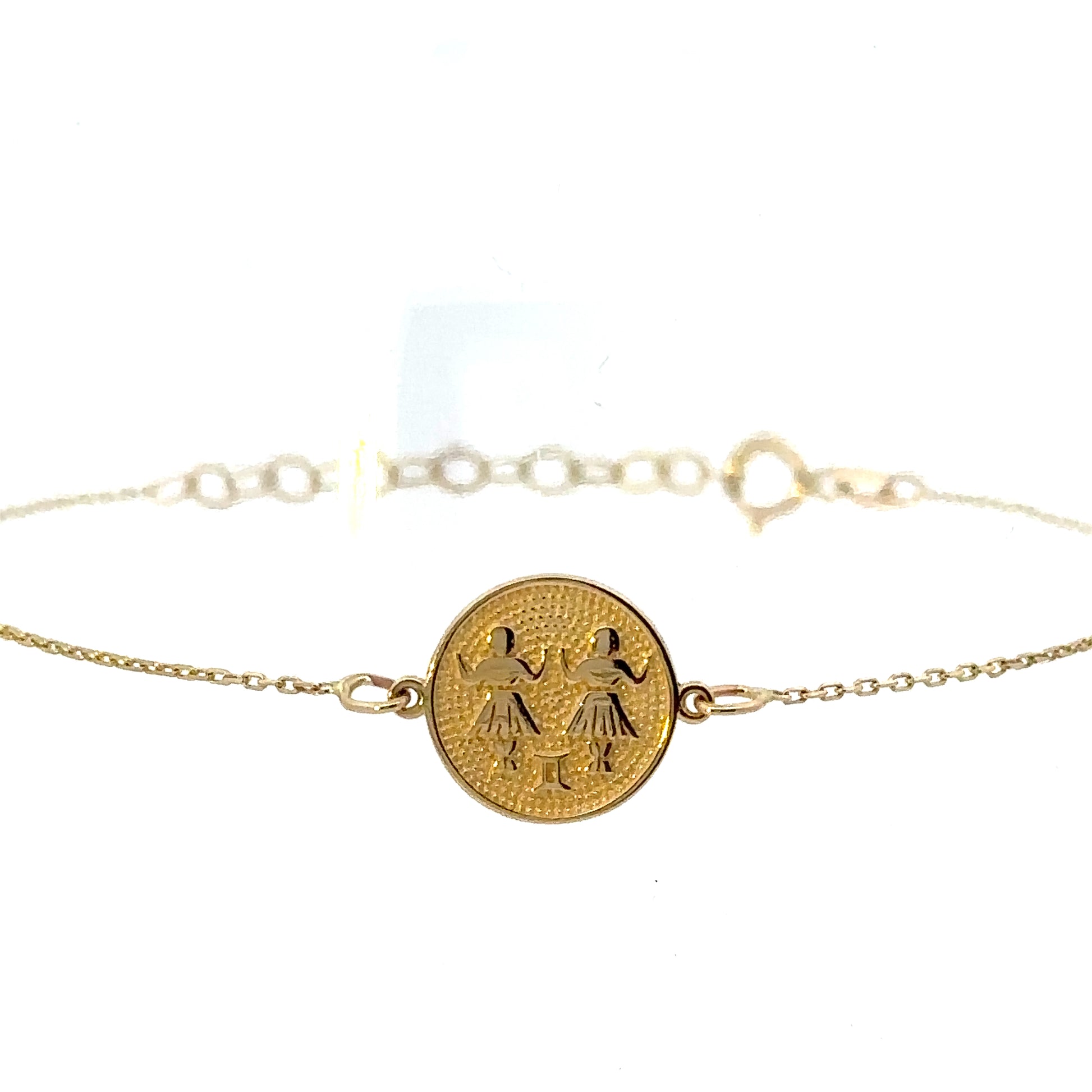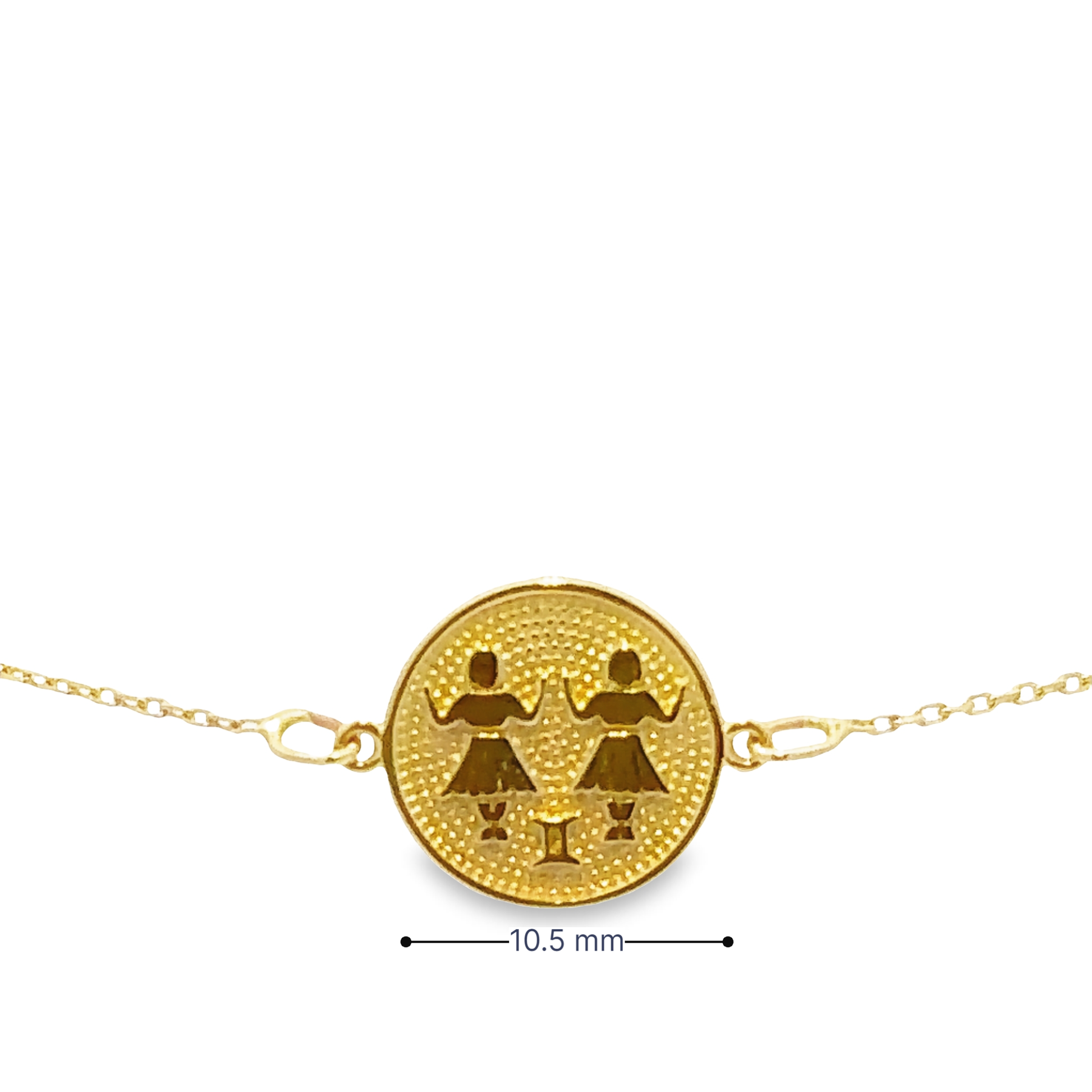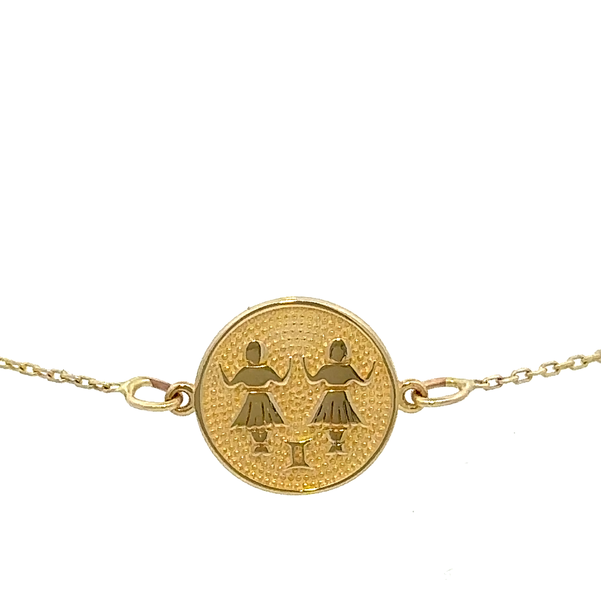 14 Karat Gold Gemini Zodiac Disc Bracelet
