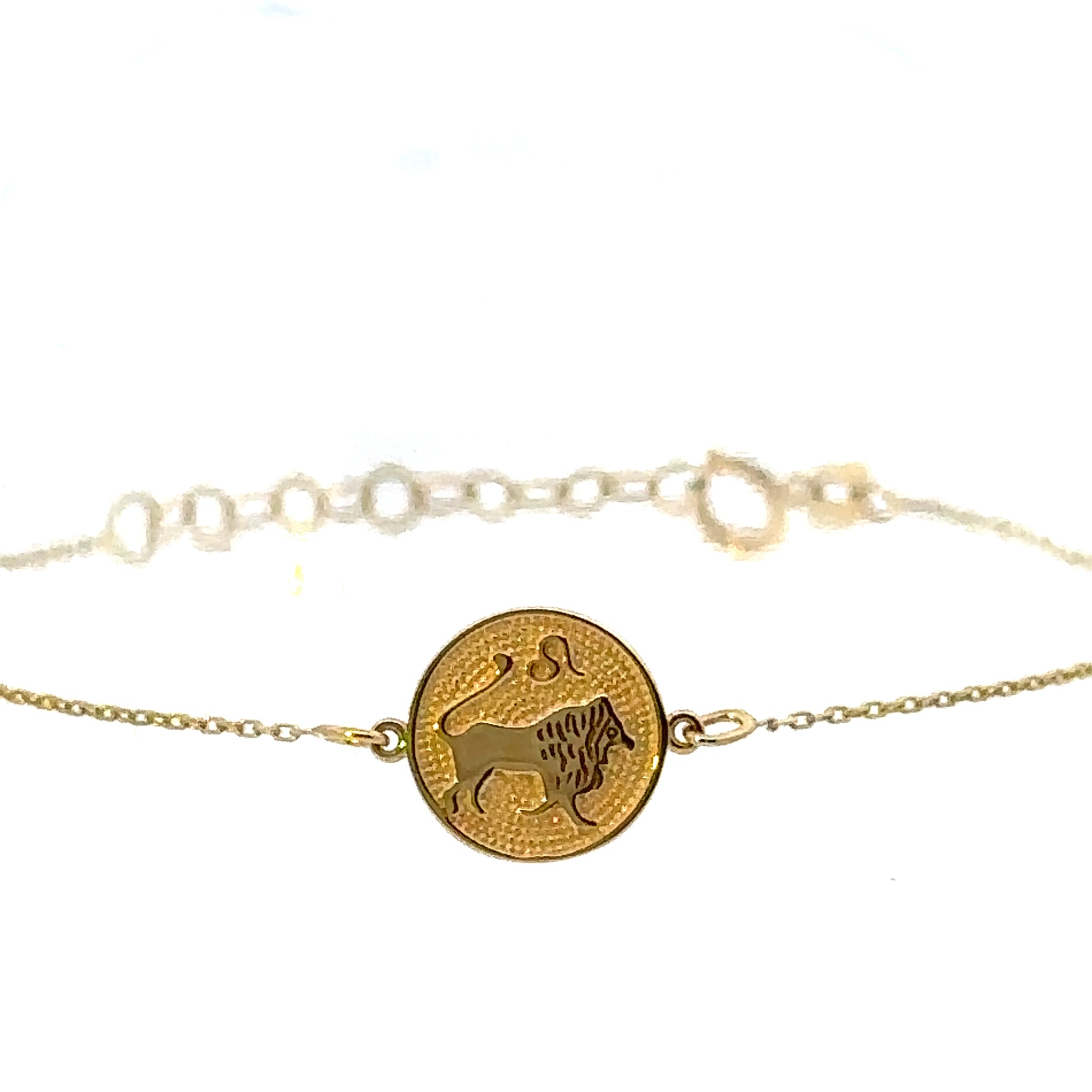 14 Karat Gold Leo Zodiac Disc Bracelet