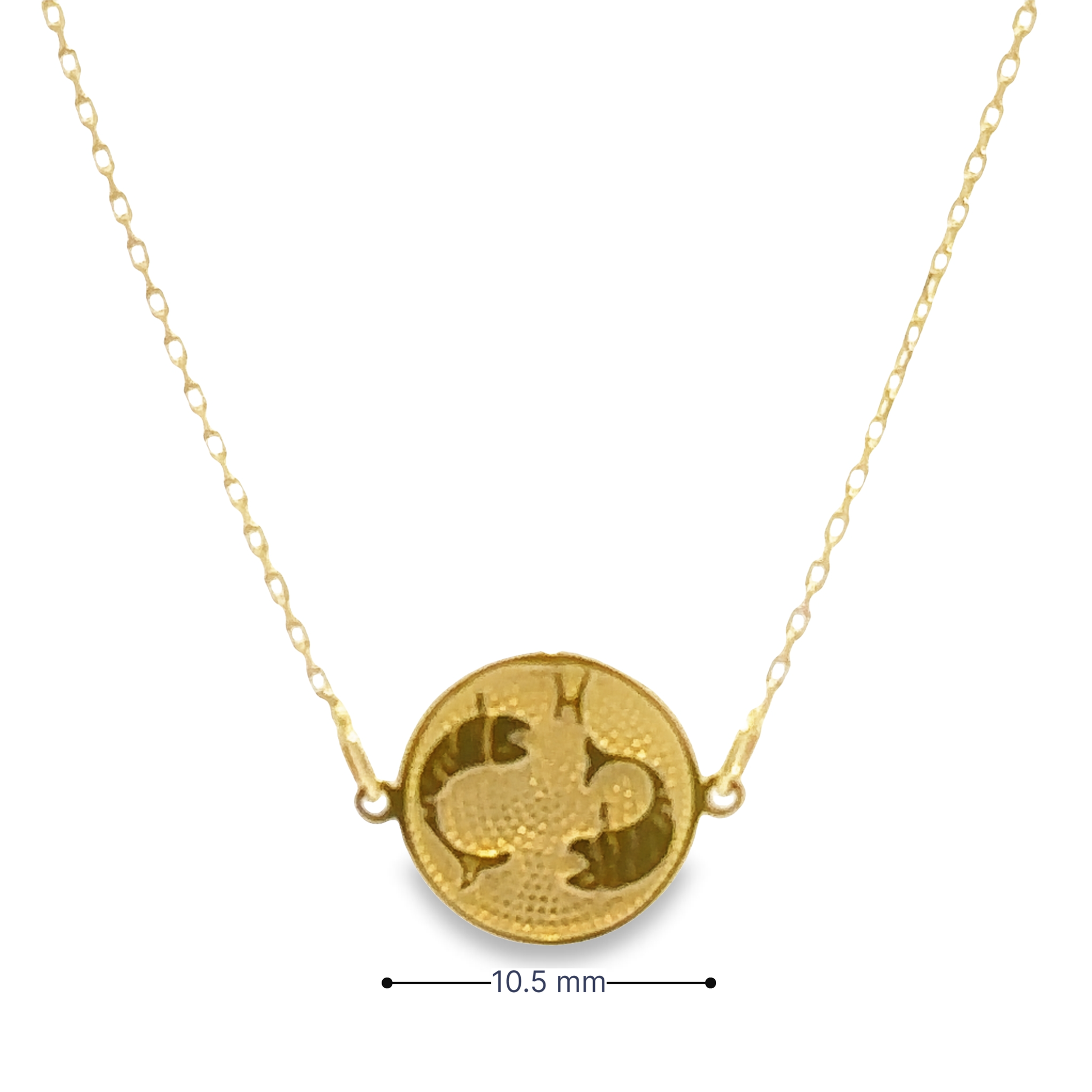 Showcase your Pisces pride with our 14 Karat Gold Pisces Zodiac Disc Bracelet. This bracelet symbolizes the essence of your sign, adding a touch of celestial allure and artistic flair to your daily ensemble.