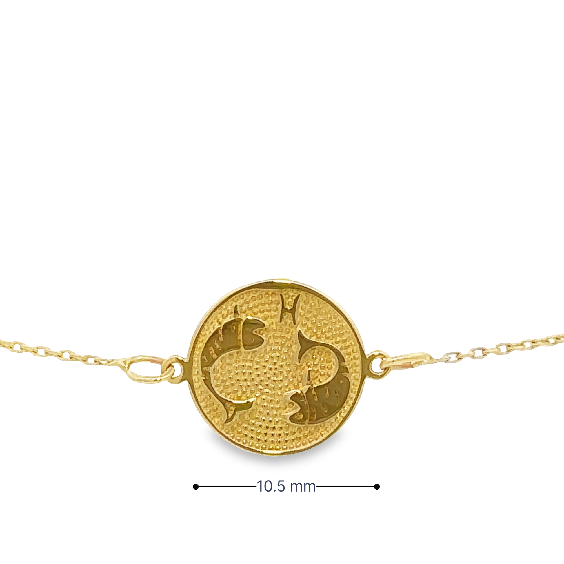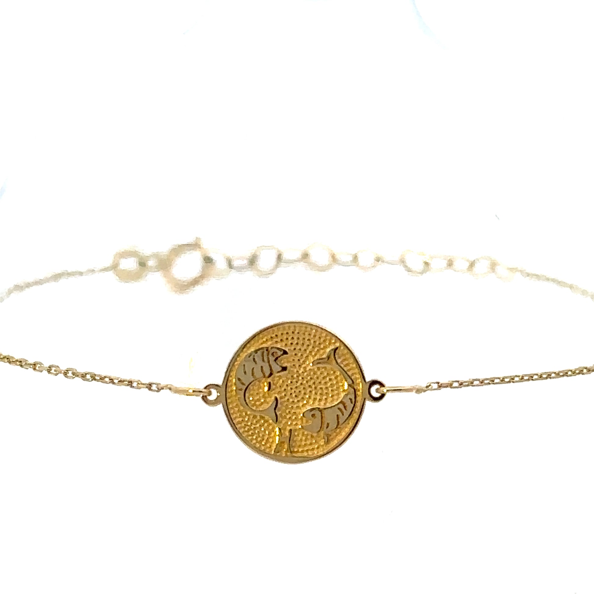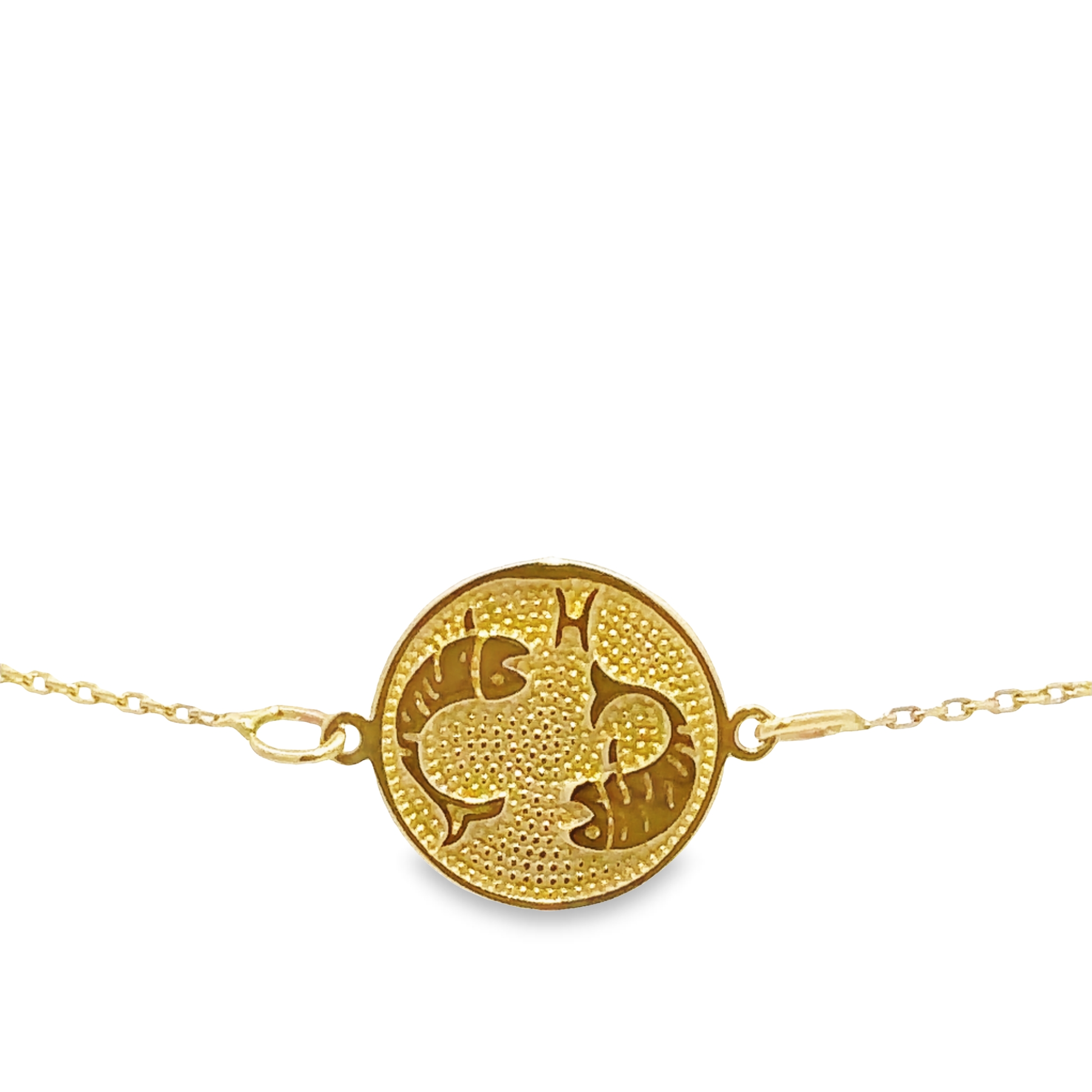 14 Karat Gold Pisces Zodiac Disc Bracelet