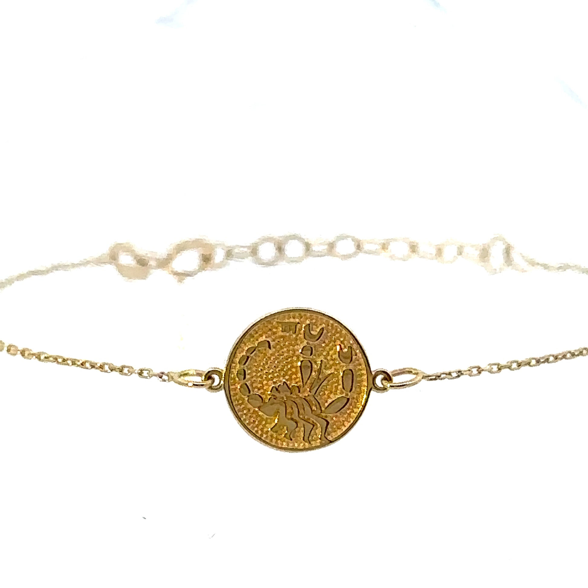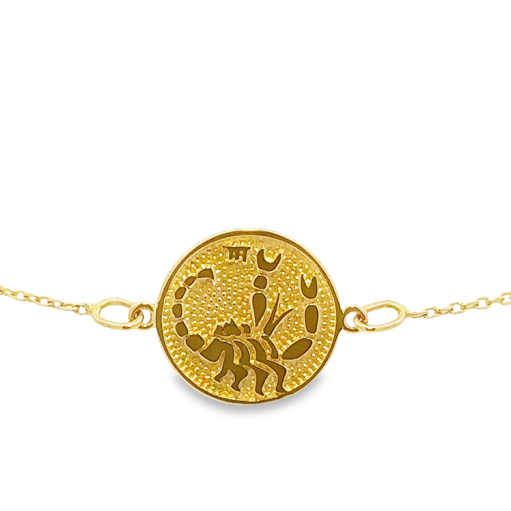 14 Karat Gold Scorpio Zodiac Disc Bracelet