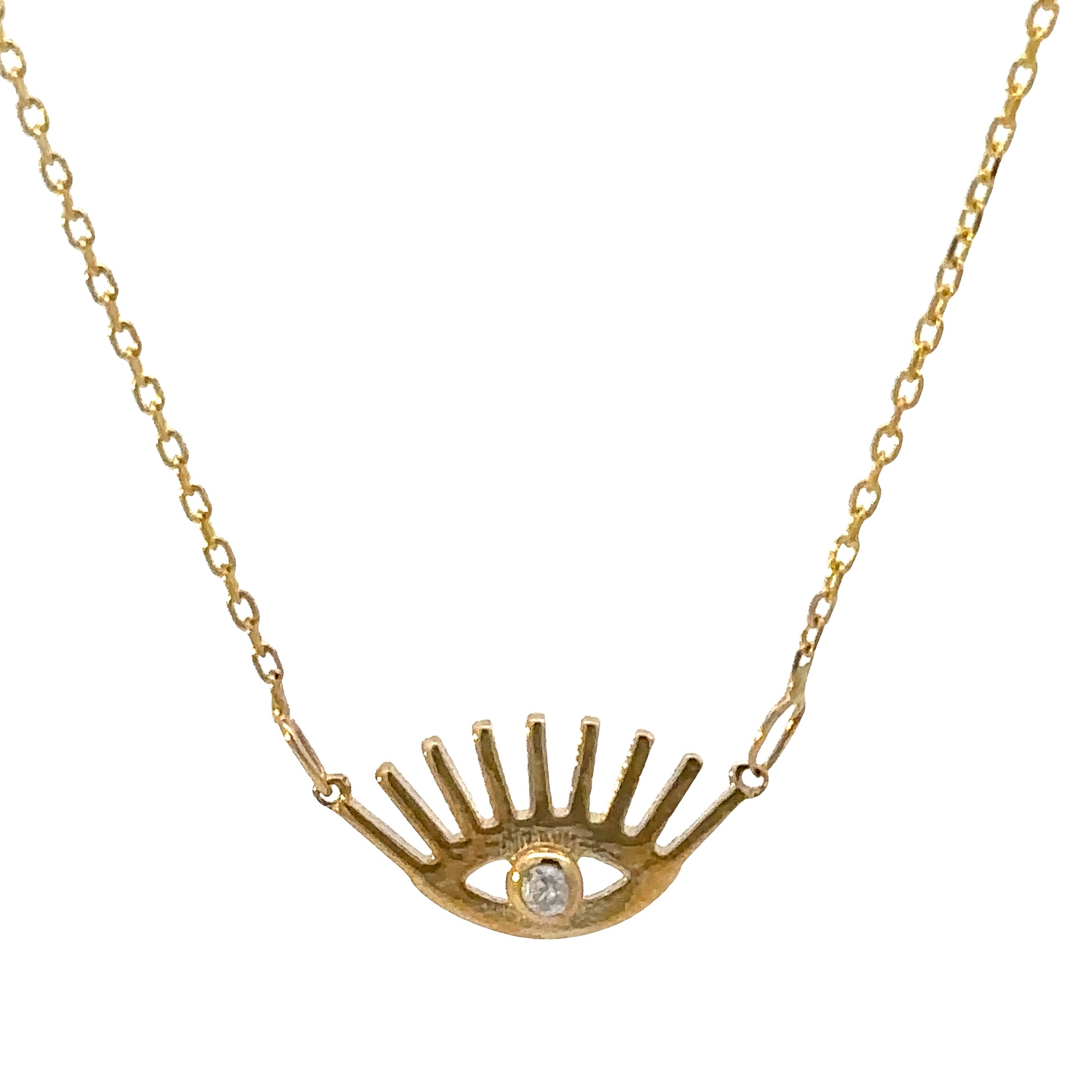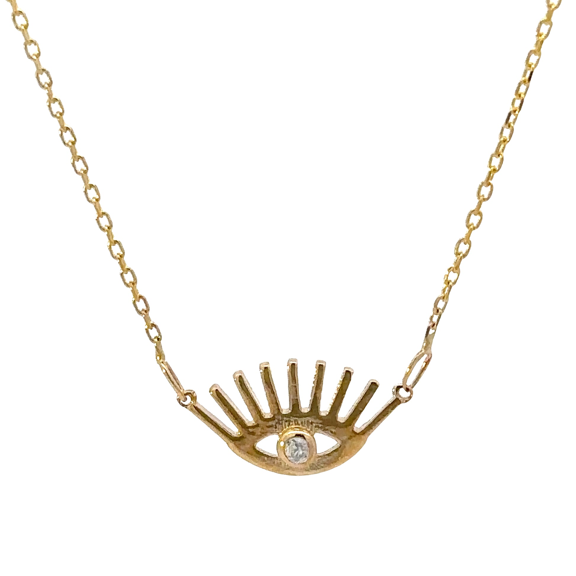14 KARAT SOLID GOLD EVIL EYE LASH NECKLACE