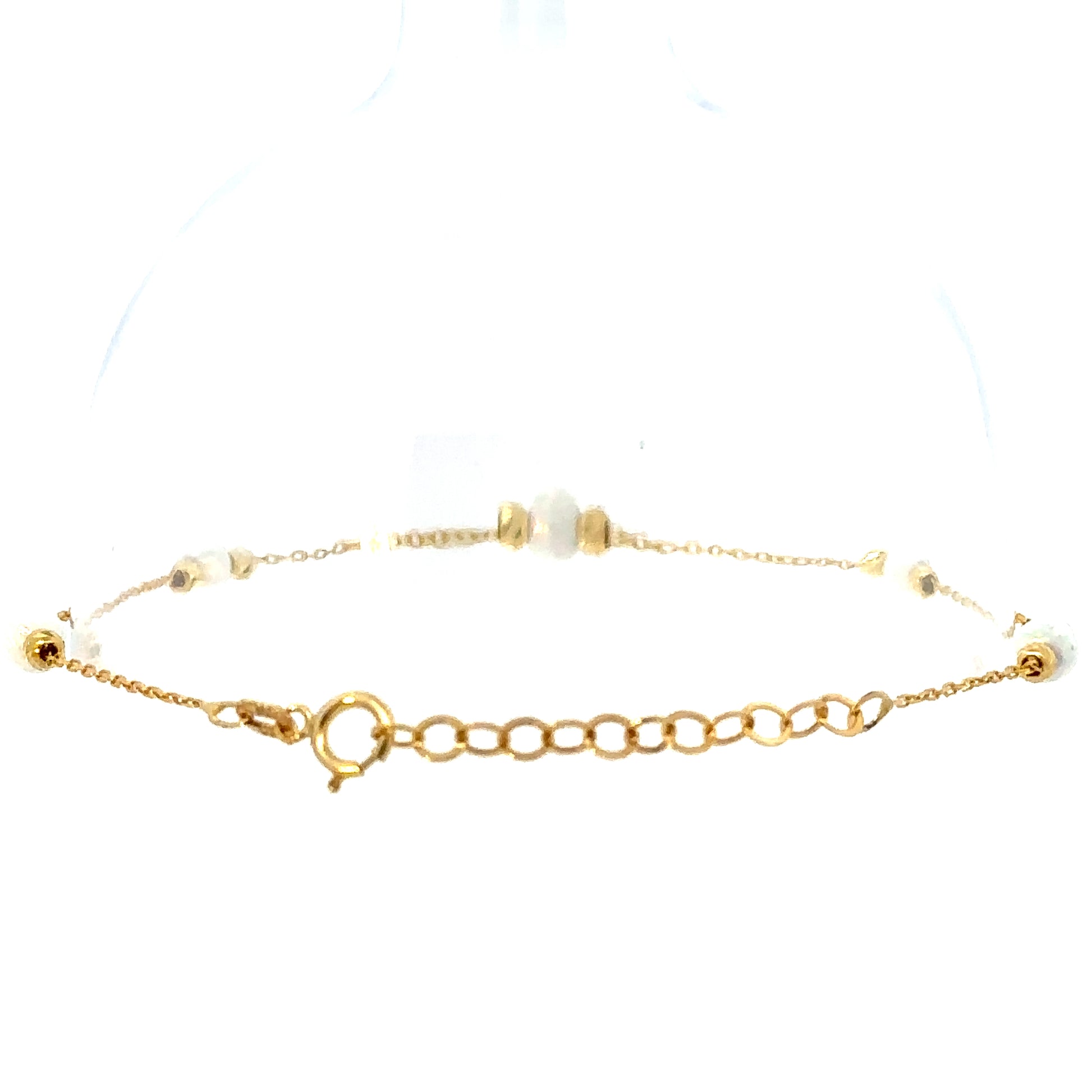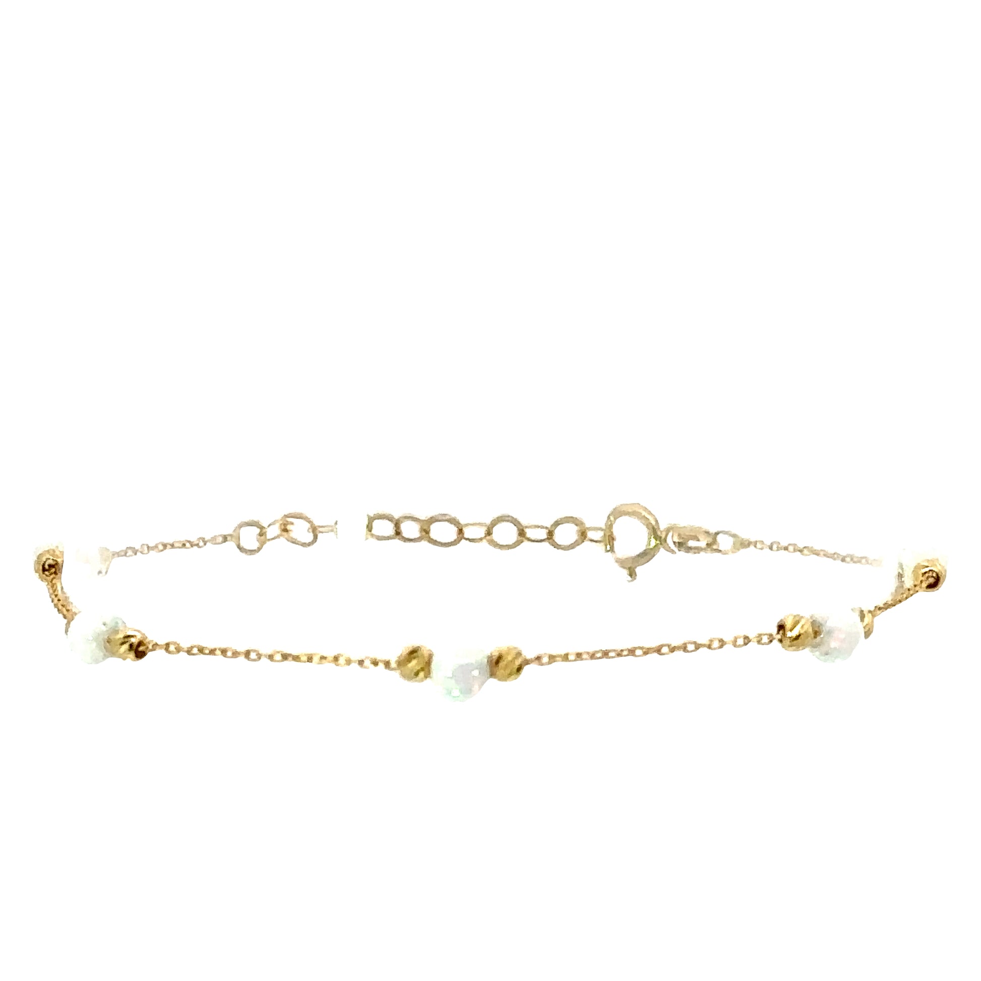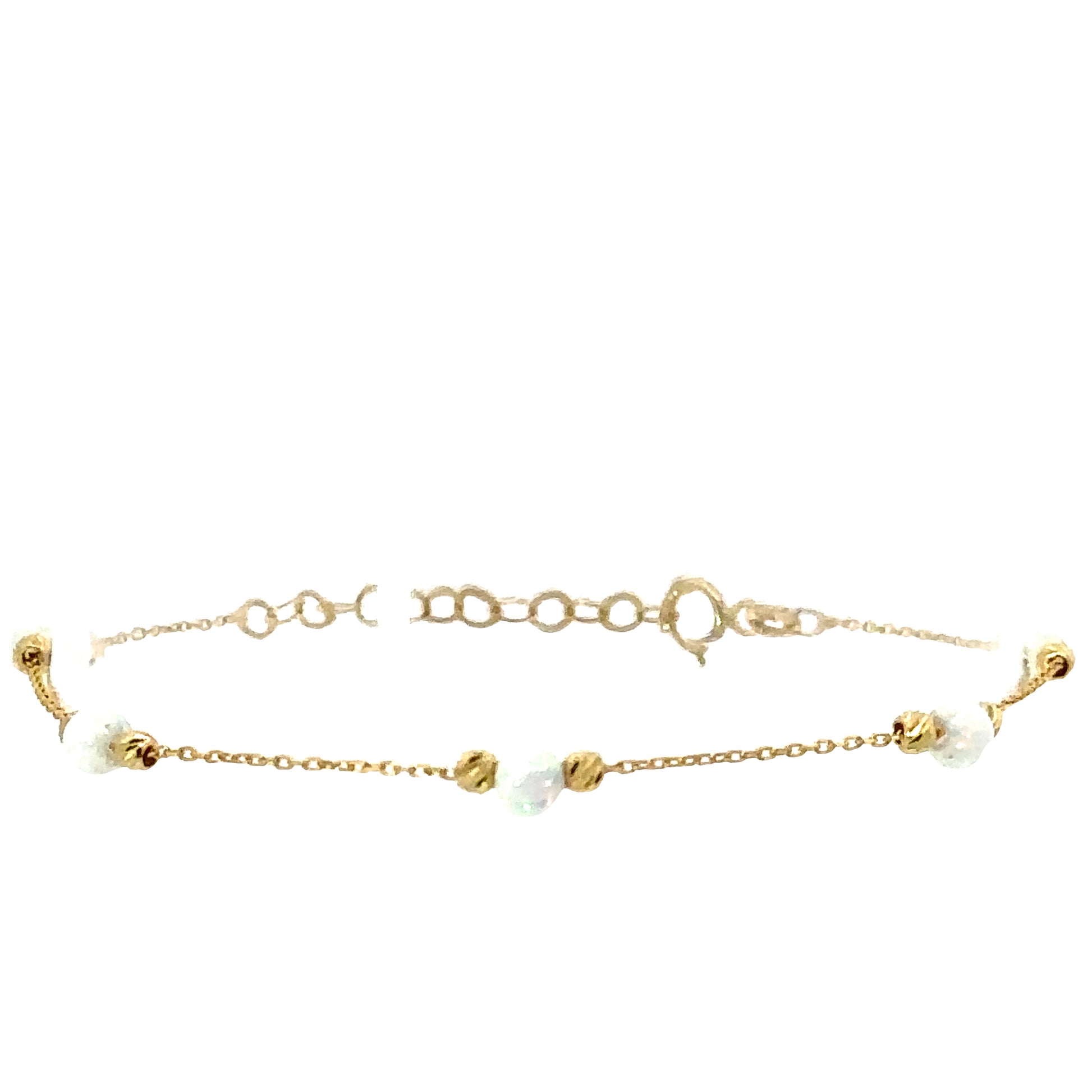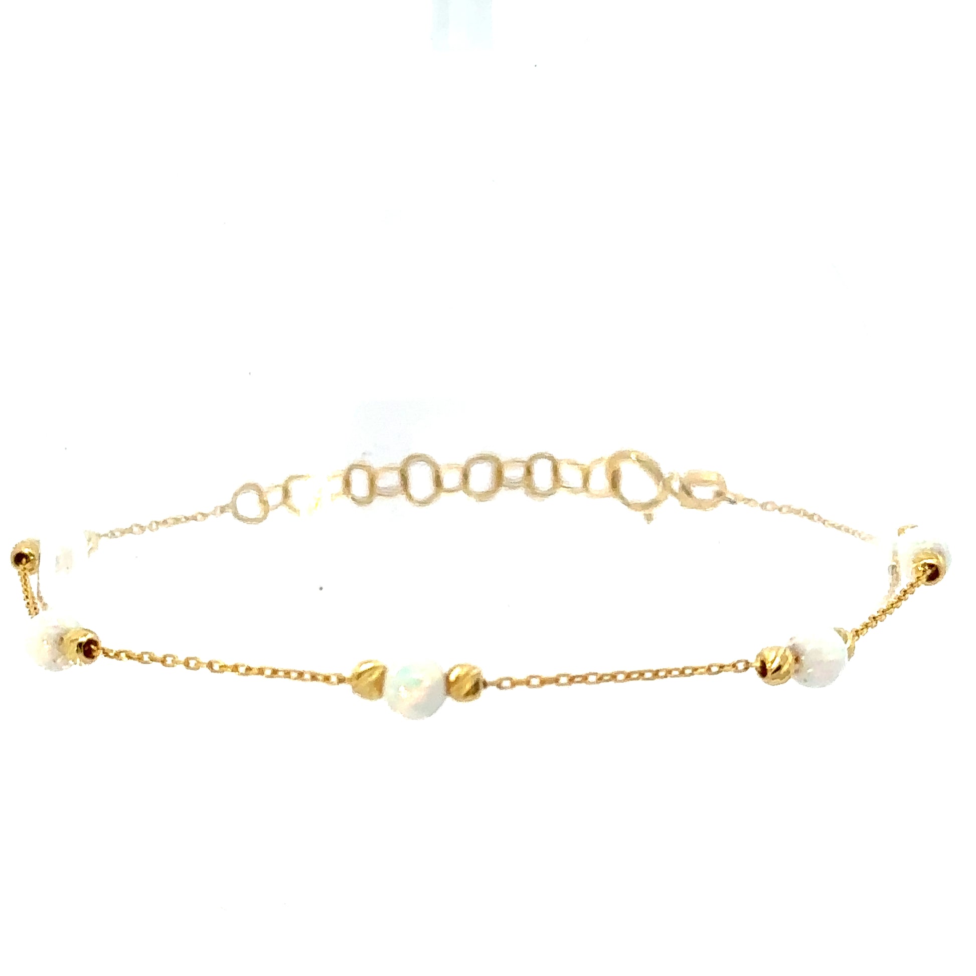 Drape your wrist in the timeless elegance of our delicate gold chain bracelet. Adorned with shimmering accents, this piece is the perfect touch of sophistication for any ensemble.